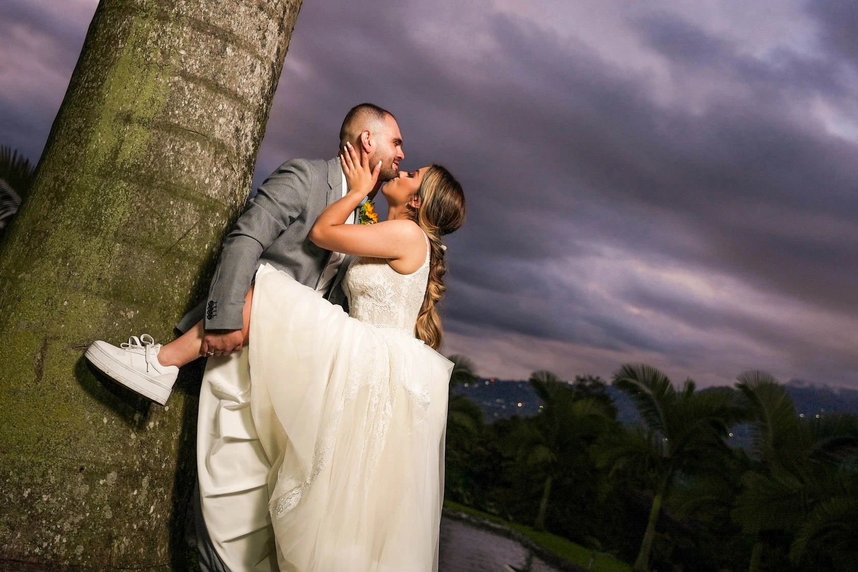 Boda Tequendama Cundinamarca Los novios y el cielo morado